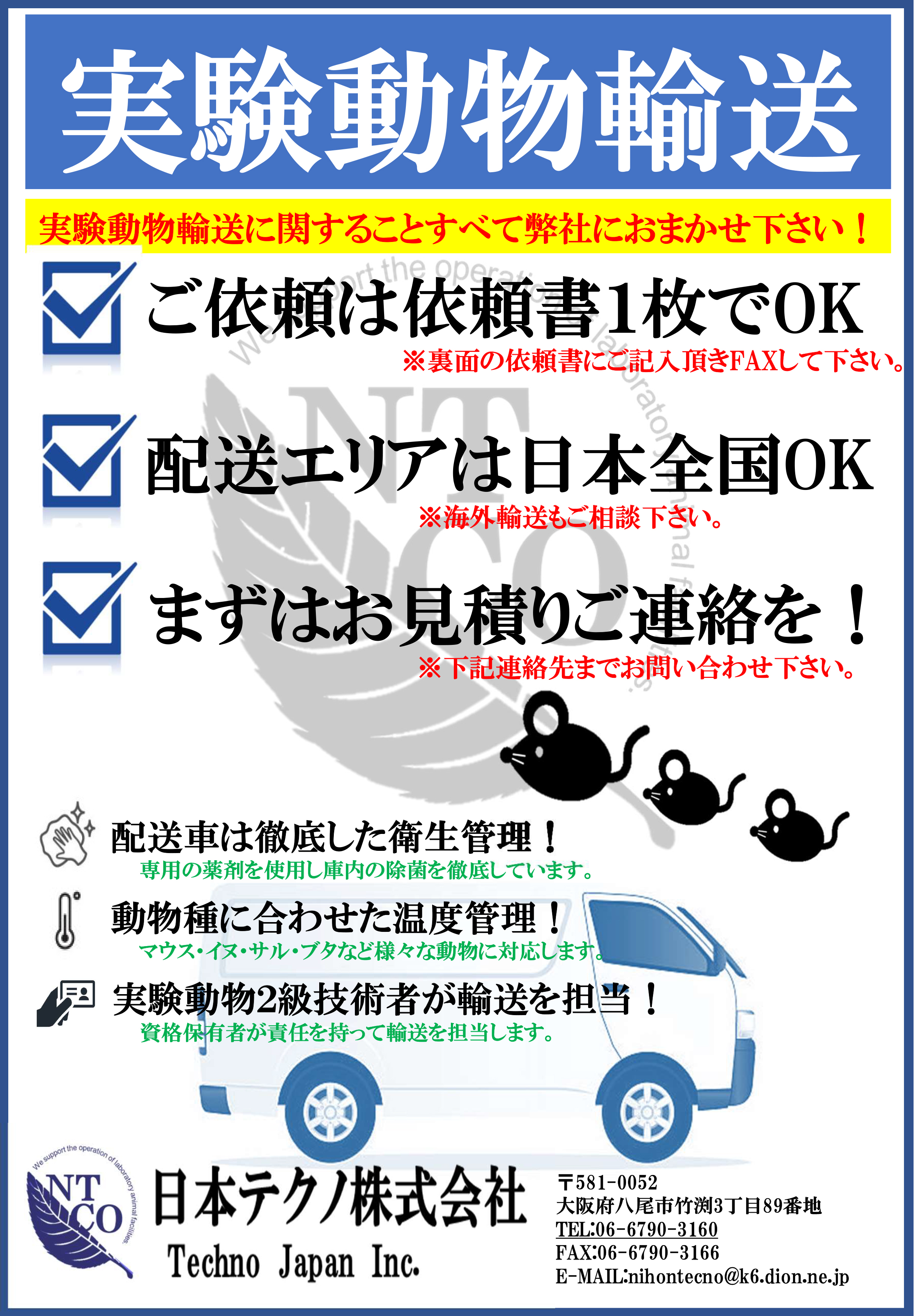 弊社では実験動物2級技術者を持った専門技術者が輸送を担当致します。
